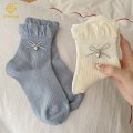 거품 구강 레이스를 가진 한국 버전 보우 리본 튜브 양말