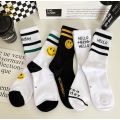 한국 버전 만화 스마일 페이스 편지 스포츠 양말을 가진 높은 튜브 양말